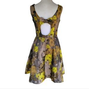 Louche London Gold Abstract Floral Cut Out Back Midi Dress