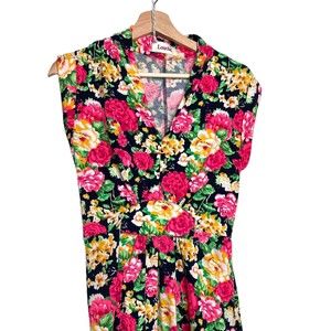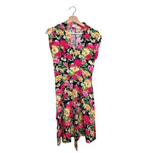 Louche Women's Sleeveless Floral Dress Fit & Flare Tie at Waist Size Small