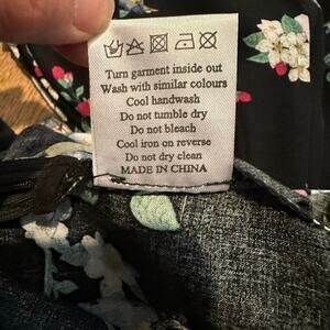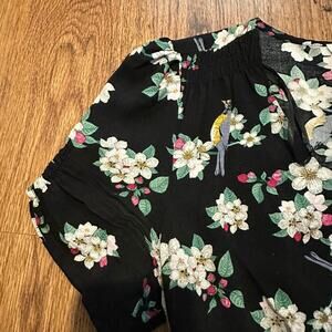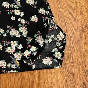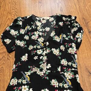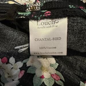 Louche black floral bird v neck short sleeve midi dress size 10 unlined