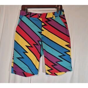 These Loudmouth Golf Men's Colorful John Daly Captain Thunderbolt Shorts in size 32 are perfect for casual occasions. Made from a comfortable cotton blend material, these multicolor shorts feature a flat front design with a regular fit. The brand Loudmouth Golf is known for its athletic style, making these shorts both stylish and practical for golfing activities. The colorful theme adds a fun and vibrant touch to your golfing attire, making you stand out on the course.