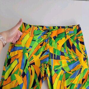 Loudmouth Golf Pants Womens Size 2 All Over Print Geometric Crop Capri AOP Golf Golfing Artsy Art to Wear Vibrant Colorful