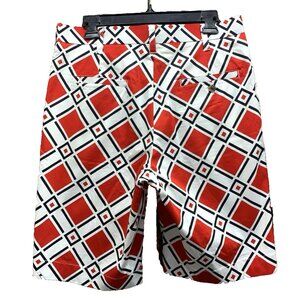 Loudmouth Golf Shorts Mens Size 32 Red White Diamond Geometric EUC