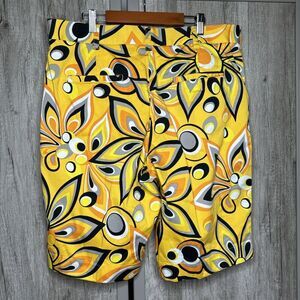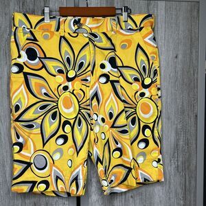 Loudmouth Golf Shorts Size 36 Yellow Black Orange Floral 10" Inseam Bermuda