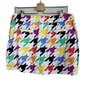 Loudmouth Ladies Golf Skirt White Colorful Houndstooth Skort Size 10