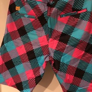 Loudmouth Men's Athletic Shorts - Pink, Blue, and Black Checkered