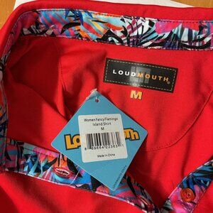 Loudmouth Women's Fancy Flamingo Island Short Sleeve Golf Red Polo Shirt NWT M