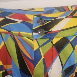 The Loudmouth Women's Toucan Bermuda Golf Shorts in size 6 are a vibrant and colorful addition to any activewear collection. Made from polyester material, these shorts feature a geometric pattern and a zip closure for easy wear. The Bermuda style with a high rise and flat front design offers comfort and a flattering fit. With pockets for convenience and stretch for ease of movement, these shorts are perfect for activities like golfing, walking, or enjoying outdoor adventures in warmer weather. The multicolor design with the brand's logo accents adds a fun and preppy touch to these stylish and practical shorts.