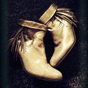 Feel special in these gold booties. So stylish! You may pair them with casual jeans/leggings or with a fancy dress and go out on a date. Unique and fashionable. Dirt cheap price. If unsatisfied you may return.