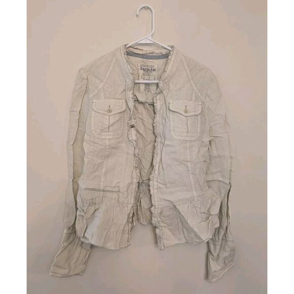 Louie Women's Jacket Cream 100% Linen Size 14 Buttons Peplum Hem. HH