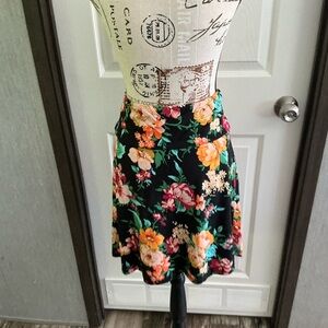 Elegant black skirt with vibrant floral patterns. Perfect for any occasion.