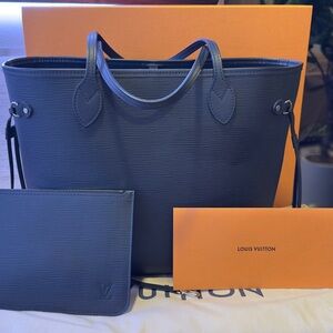 Love designer bags without the logos screaming at you. This pristine classy black Epi Leather will fit a 13in laptop, includes a zippy removable clutch or extra pocket. Also includes a red organizer/shaper, OG Box, dust bag, papers as well the leather has been regularly conditioned to prevent cracks and keeping the beauty of this beautiful leather.