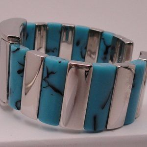 :Louis Arden stainless and faux turquoise cuff/bracelet style watch. Brand new battery. Keeps excellent time. Super shiny and sleek. Used but very little signs of any wear. In excellent condition.