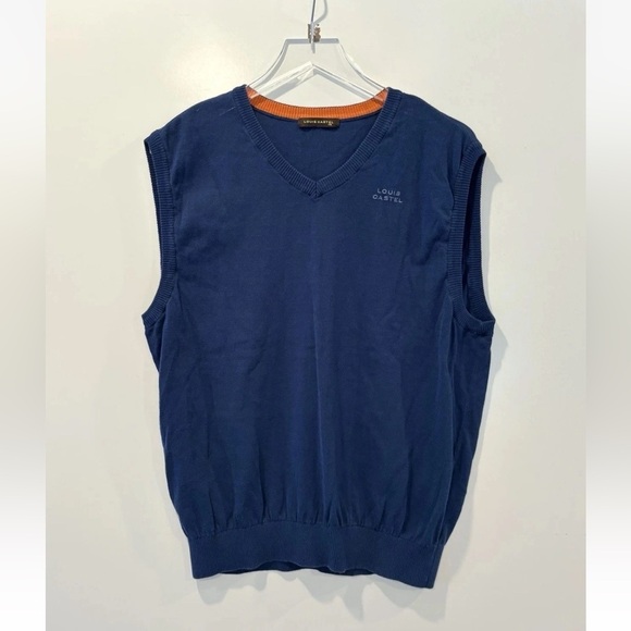Louis Castel Mens Blue Cotton Blend Golf Vest Logo Size 110 US XL