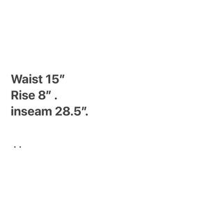 • Waist = 15", Rise = 8", Inseam = 28.5"