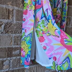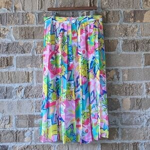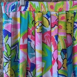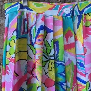 Excellent preowned condition tropical floral pleated maxi skirt from Louis Ferand. Knife pleats. Fully lined. 2 side slits. 100% polyester. No flaws or signs of wear, this looks and feels brand new!