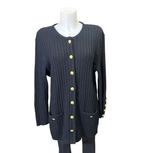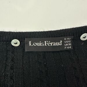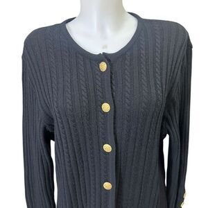 Louis Feraud Black Cable Knit Wool Cashmere Cardigan Vintage Chunky Button sz 12