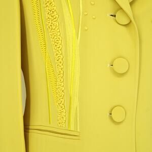 Louis Feraud Jacket Women's 8 Yellow Twill Lined Embroidery Detail Blazer Vintage