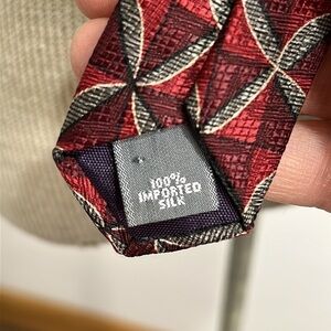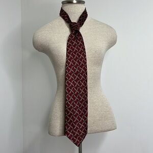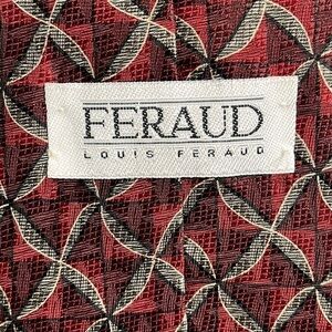 Louis Feraud Men’s Tie Red Black Gray Pinwheel Check Print Necktie