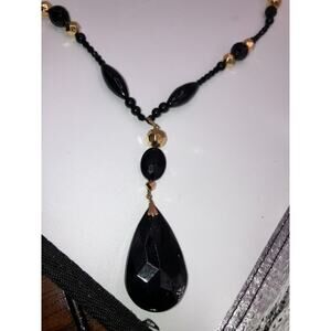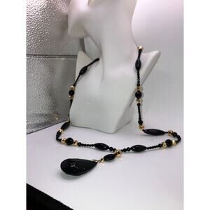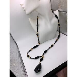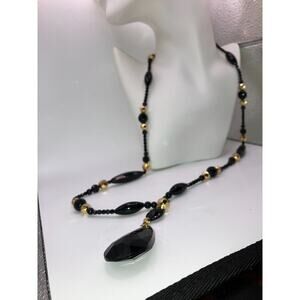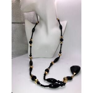 Vintage Louis Feraud Paris Black & Gold Beaded Necklace. Long, Short Oval Black Beads And Black And Gold Round Beads With A Detachable Teardrop pendant With Two Beads . 32.5" Long 3" Drop Pendant.