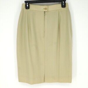 Louis Feraud Skirt Womens 8 Beige Gold Wool Blend Lined Pencil Back Zip Vintage