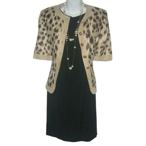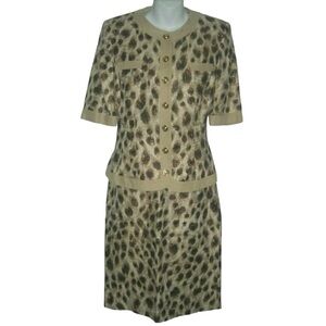 Louis Feraud Suit Vintage Leopard Print Metallic Linen Logos Old Money Mob Wife