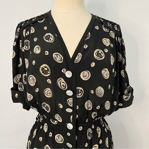Louis Feraud US12 42 Vintage Cap Sleeve black circle dot 0128
