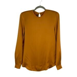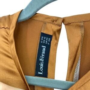 Louis Feraud Vintage 100% Silk Long Sleeve Ochre Brown Blouse Size 6