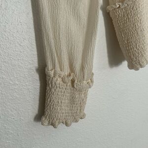 This vintage Louis Feraud cream silk blouse is a stylish and lightweight addition to any wardrobe. The button front, V-neck design is perfect for casual occasions, while the long sleeves and sheer material make it ideal for summer and spring seasons. The ruched detailing adds a touch of elegance, and the cream/ivory color gives it a timeless appeal. This blouse is a size 12, with a regular fit, and is a must-have for any fashion-forward woman looking for a classic and sophisticated piece.