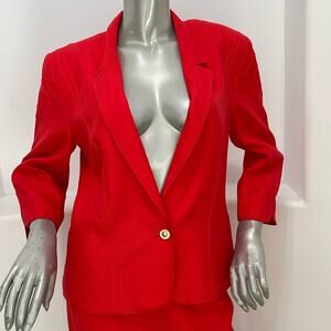 Louis Feraud Vintage Red Knee-Length Pencil Skirt Suit Set Size 10