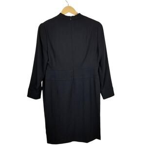 Louis Feraud Women's Classic Navy Blue Wool Long Sleeve Faux Wrap Dress Size 14