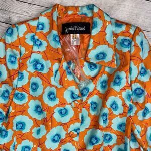 Louis Feraud Women's Orange and Blue Floral Jacket Blazer 100% Silk Size US 12
