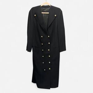 Louis Féraud Black Double Breasted Trench Coat Classic Heritage Preppy XL