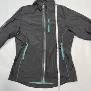 Garneau Jacket Womens Medium Gray Turquoise Full Zip Cycling Windbreaker Reflective