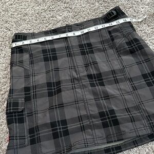 Louis Garneau medium women’s black gray plaid skirt athletic adjustable pocket