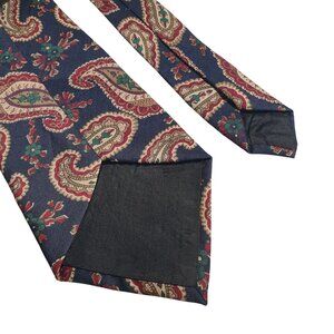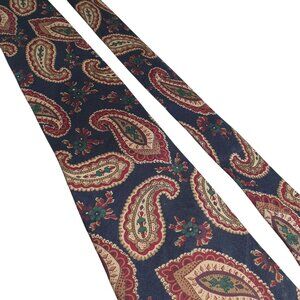Louis Hebert Paris Paisley Pattern Silk Tie Navy Gold Red Green Mens Neckwear