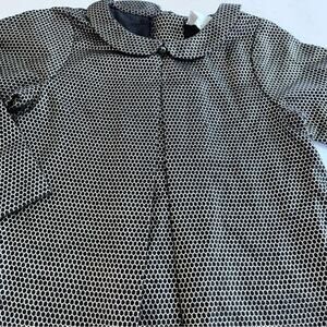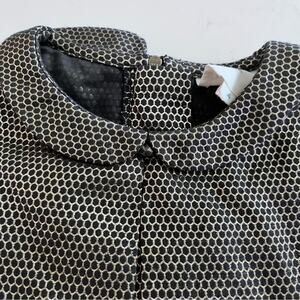 A-line long sleeve dress with front pleat, round collar and back zipper. Metallic gold geometric print. Fully lined. Excellent condition. Size 4