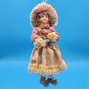 Louis Nichole 1999 Victorian Girl Ornament Kurt Adler Christmas Dangling Legs v2