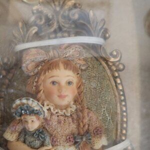 This delicate Louis Nichole ornament captures a nostalgic charm, showcasing a young girl with her doll in intricate hand-painted detail. A timeless collectible.