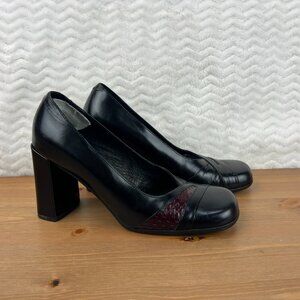 Louis Norman Pumps Leather Block Heel Square Toe Vintage 90s Sz 37 US 6.5 Italy