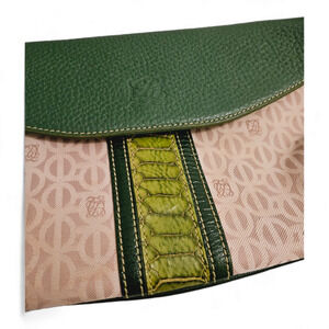 Louis Quatorze Paris Green and Canvas Monogrammed Leather and Canvas shoulder bag. EUC.