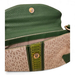 Louis Quatorze Paris Green Monogrammed Leather and Canvas Shoulder Bag.