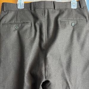 These Louis Raphael dress pants are 100% wool. Pleated, cuffed. Slit hip pockets, buttoned back slit pockets. Dry clean. Career wear, special occasion, holidays, professional, academia.