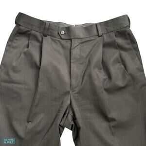 Louis Raphael Luxe Wool Pleated Dress Pants Hidden Waistband Black Classic 34x32