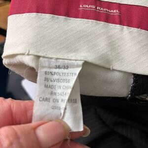 These Louis Raphael dress pants are from the designer’s red label collection. 65% polyester, 35% viscose, dry clean. The fabric is a brown with light brown pinstripes, perfect for career or business wear. Lightweight for spring or summer wear.