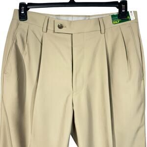 Louis Raphael SZ 32W 32L Golf Pants 2-Pleat Pockets Quick Dry Khaki Beige Mens