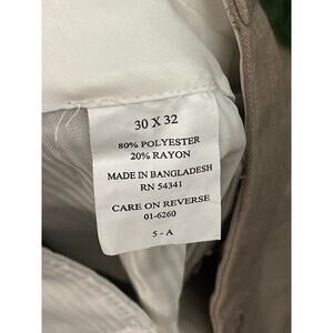 Elevate your workwear wardrobe with these Louis Raphael tailored women's trousers in size 30x32. These classic fit pants feature a solid pattern and a high rise waist, paired with a straight leg style and a pleated front type. The hook and loop closure and zipper accents add a touch of sophistication, making them perfect for formal and business occasions. Made from a blend of polyester and rayon, these dress pants are easy to care for with dry clean only instructions. The beige color is versatile, suitable for all seasons, and the garment care aspect ensures they will last for years to come. Add these timeless pants to your collection today!