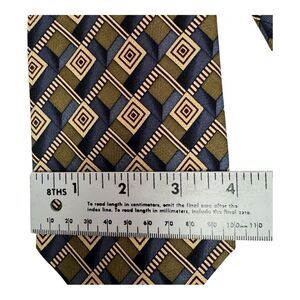 Louis Roth Olive and Navy Geo Design Preppy Office 100% Silk Tie