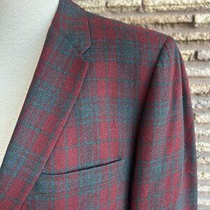 Louis Roth Union Made Vintage 80s Red Gray Plaid Wool Blazer Sports Coat Size 39