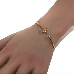 Description: Authentic Louis Vuitton bracelet that is made of 18-karat pink gold. This bracelet is adorned with 1 diamond and 1 monogram flower. It has a shape memory which allows it to be twisted on your wrist. I purchased this for a family member, but she changed her mind on getting this as her gift. So, I decided to sell.
