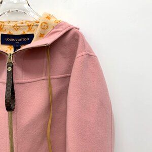 Louis Vuitton 24 Collection Pink Lined Logo Monogram Wool Hoodie Zip Short Coat